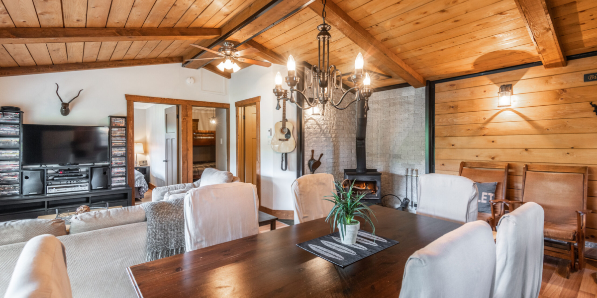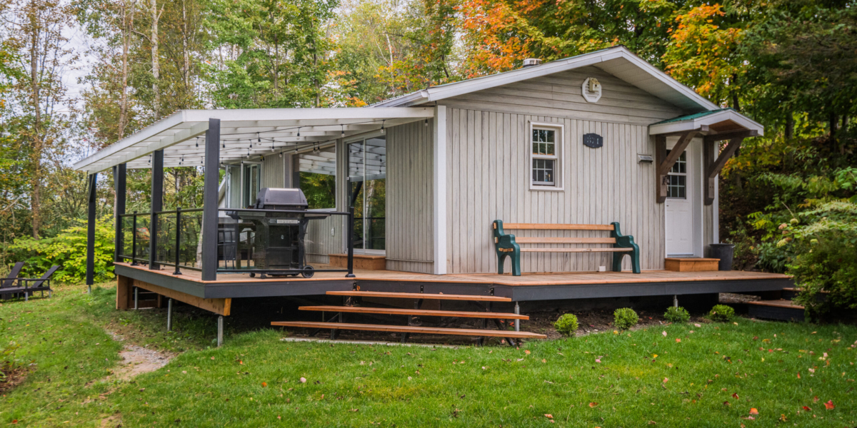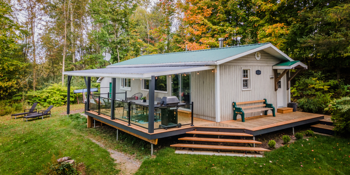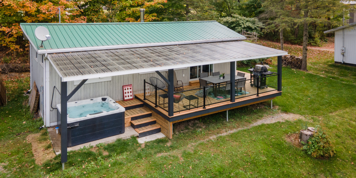 Beaucoup de soins ont été apportés au Chalet de Théodore afin d’y créer une ambiance chaleureuse et conviviale. Coquet et abordable, ce chalet à louer, au style rustique, vous séduira par ses nombreuses galeries, notamment celle couverte avec vue sur la Rivière Nicolet. La présence d’un spa dans ce vaste espace extérieur garni de verdure vous garantit un séjour relaxant et rempli de beaux moments en famille ou entre amis. Ce chalet, rénové avec goût, vous offre tout ce qu’une maison a à offrir et plus encore. Entièrement meublé, la location inclut également literies, serviettes et salle de lavage. D’autres commodités telles le Wifi, Express Vu, un foyer intérieur, un rond de feu extérieur, des chaises d’extérieur et un BBQ et des kayaks sont aussi fournies. Seul vos effets personnels et votre nourriture demeurent votre préoccupation. Le reste est déjà disponible sur place et prêt à vous accueillir.